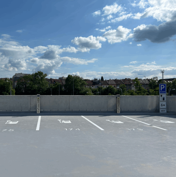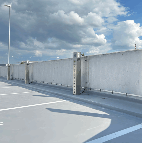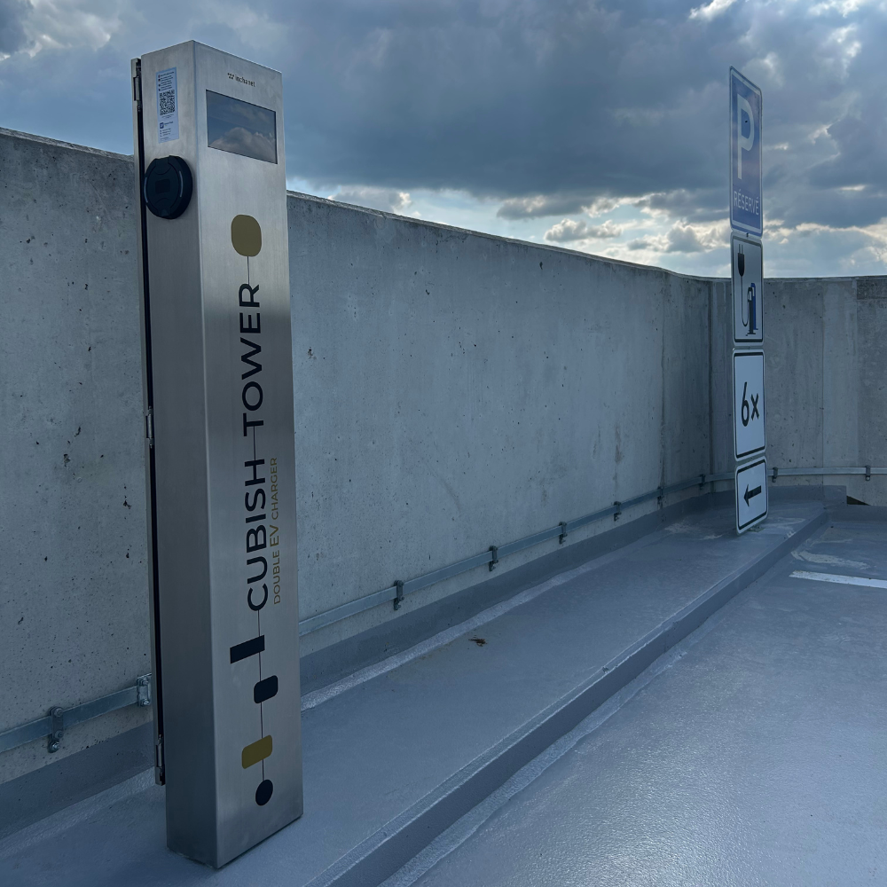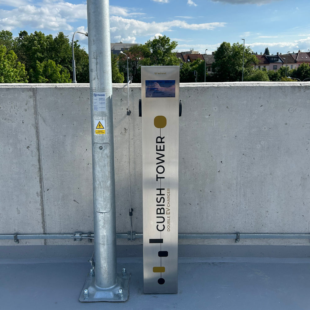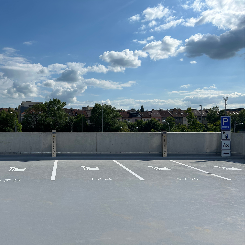 Na střeše parkovacího domu byly realizovány veřejně přístupné AC nabíjecí stanice pro elektromobily, které poskytují moderní a uživatelsky přívětivé řešení pro elektromobilitu. Aktivace a placení nabíjení probíhá pomocí QR kódu prostřednictvím služby Smart Fuel Pass, což umožňuje rychlé a bezpečné spuštění nabíjení. Nabíjecí stanice jsou integrovány do technologie měření a regulace (MaR) s využitím komunikačního protokolu ModBus TCP, který omezuje nabíjení dle ¼ hod. maxima. Projekt představuje spolehlivou infrastrukturu pro elektromobily v souladu s požadavky moderní městské e-mobility.